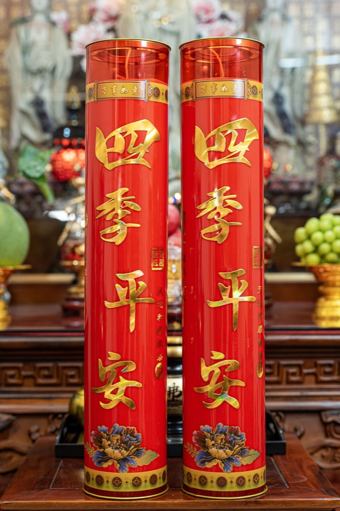 Sản phẩm có màu đỏ hoặc vàng – hai gam màu linh thiêng tượng trưng cho may mắn, trí tuệ và bình an. Khi thắp sáng, nến không chỉ tạo nên bầu không khí ấm cúng và trang trọng mà còn mang giá trị tâm linh sâu sắc, giúp gia chủ thể hiện lòng thành kính dâng lên tổ tiên và chư Phật.